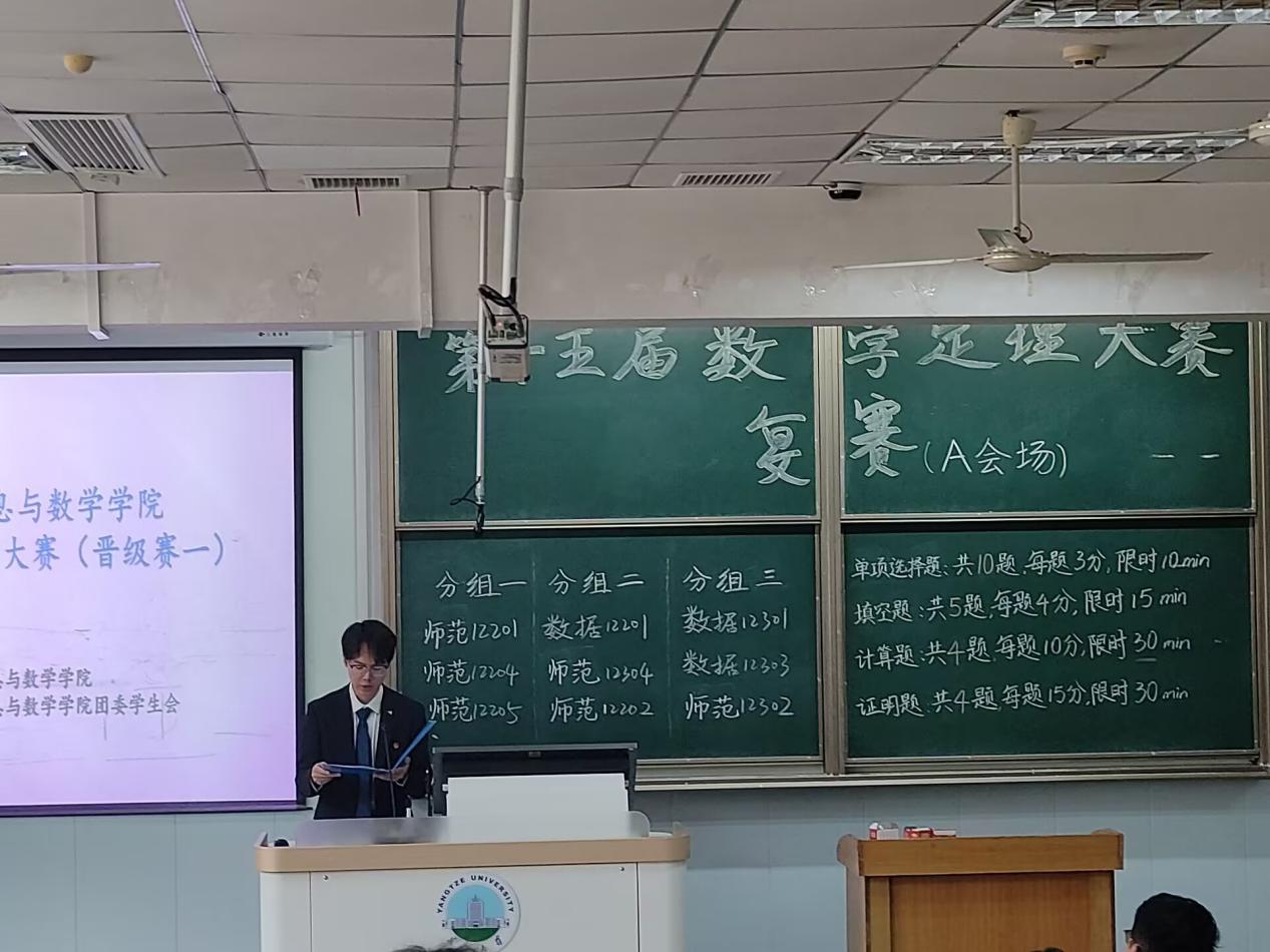 精心组织的数学定理大赛于5月8日拉开初赛帷幕,并于5月10日下午和晚上分别举行复赛及决赛。本次大赛通过多元赛制和深度探讨,旨在引领同学们探索定理背后的数学魅力,开启一场知识与智慧的盛宴。院长张涛、院党委副书记谷军、全体辅导员,教师代表朱建伟、熊骏、郭金海、汪春花老师,以及全体 22 级、23 级参赛学生共同参与了此次活动。