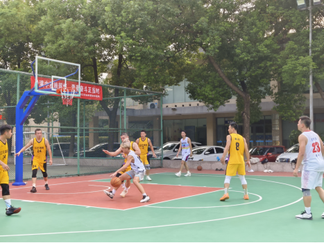 篮球队与江汉油田篮球队在风雨篮球场展开篮球交流赛。