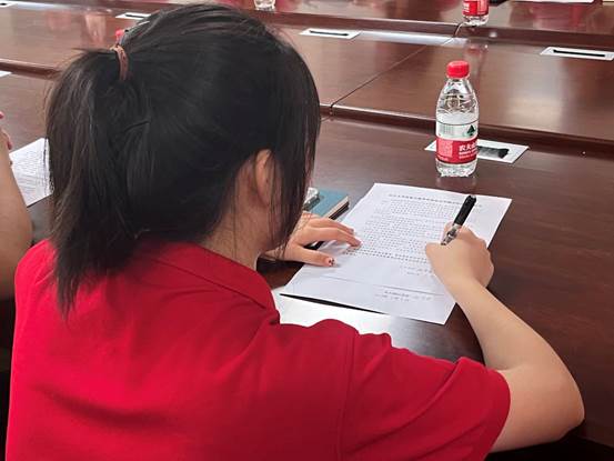 活动伊始,全体起立,奏唱国歌,启动仪式拉开帷幕。首先暑期社会实践队队长欧登波代表志愿者发言,他表示,暑期社会实践项目为学生提供了广阔的舞台,同学们定会履行誓言,全力以赴开展好今年的社会实践活动。接着院党委副书记袁海山结合自身经历,向志愿者提出了建议及要求,他表示,在社会实践的过程中,要确保活动安全,不仅确保自身安全,也要确保支教学生的安全。随后院党委书记李喜成为本次暑期社会实践授旗,并对实践团队成员提出了三点希望:一是希望团队时刻紧绷安全神经,确保暑期社会实践活动的顺利进行;二是希望成员珍惜本次机遇,全面提升自身综合素质并高质量的完成支教工作;三是希望学生充分发扬志愿者精神,争当时代先锋,在社会实践和志愿服务中践行“请党放心 强国有我”的铮铮誓言,同时努力“让青春在全面建设社会主义现代化国家的火热实践中绽放绚丽之花”。授旗后,志愿队代表于佳琳带领全体志愿队队员进行宣誓,志愿者们纷纷表示,在接下来的实践活动中将深化思想引领,把言语落到实处,磨炼意志、施展才华、开拓创新,在实践中成长,在奉献中成才。最后暑期社会实践团队成员签署安全责任书及支教协议并到楼下进行合影留念。本次启动仪式圆满结束。