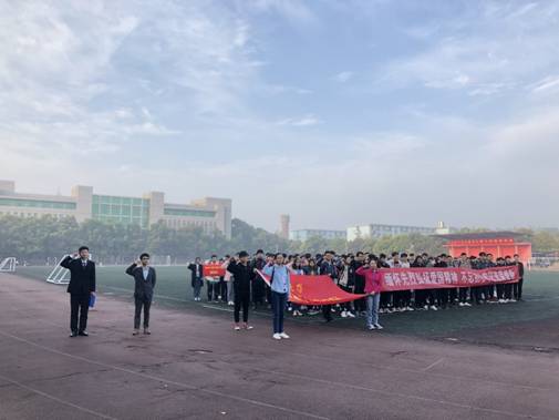 最后,全体师生高举院旗绕着田径场进行了晨跑,向心中的目标不断前行。