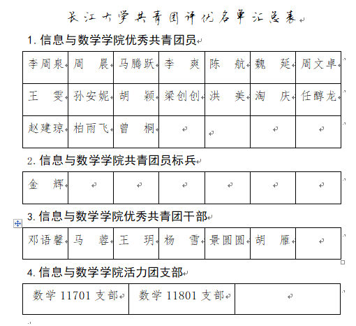 根据长大团函【2019】12号文件,经个人申报、院团委审核,院党政联席会议讨论通过,拟推荐“共青团先进集体及个人”候选人如下: