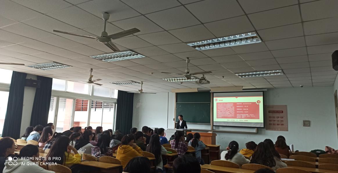 主持人代表数学11802班全体同学对所有来观摩学习此次团会的同学表示由衷的感谢和热烈的欢迎后,为与会成员讲述了中国共产党——中国工人阶级先锋队所代表的根本利益和占有的重要地位,并带领大家重温中国共产党的由来和艰难的发展历程,阐述了现阶段我国的5个基本国情,主要矛盾,以及根本任务,指明了不忘初心跟党走的大致方向。随后,由周金荟同学为大家朗诵《习近平新时代青年思想》的节选内容,其中习近平总书记指出:“全面建成小康社会,广大青年是生力军和突击队。中华民族伟大复兴的中国梦终将在一代代青年的接力奋斗中变为现实。”并进一步阐述了新时代青年对国家的深远意义,以及对青年一代的殷切期望。在主题互动答题环节中,同学们热情高涨,踊跃回答关于党的建设,我国基本经济制度,政治制度等方面的问题,由此获得小礼品,会场气氛十分活跃。最后大家齐唱《我和我的祖国》,在悠扬的歌声中,本次团会圆满结束。