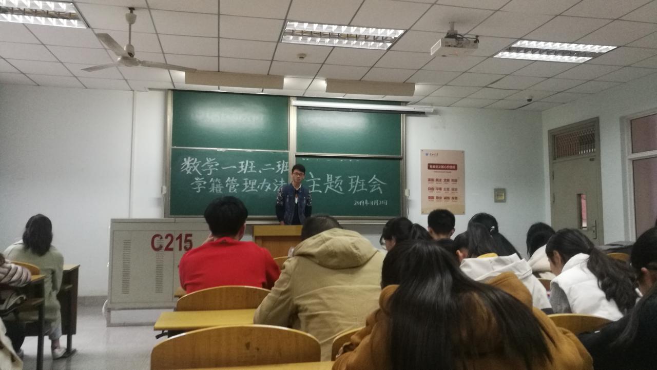 普通本科生学籍管理办法》,促使每位学生全面了解《学籍管理办法》内容, 11月18日至11月25日,信息与数学学院组织2018级、2019级本科生团支部陆续开展主题班团会,学习色情传媒