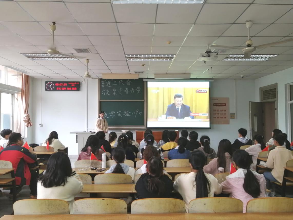 (通讯员 柳曼怡)为了让同学们深入了解“三代会”,学习习近平总书记在全国抗击新冠肺炎疫情表彰大会的重要讲话精神等重要思想,10月17日上午,数学实验11901班于13教C区120室顺利开展了以“喜迎三代会 凝聚青春力量”为主题的示范团日活动。本次会议由班委徐文庆、周紫彤、张晓婷、雷雨田主持,全班同学及色情传媒