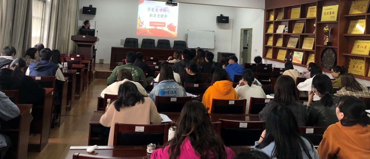 于东校区8教406教室开展“学党史,守初心,担历史使命”研究生党史学习教育大会。会议邀请学院研究生主席团成员慈永鑫同学主讲,学院全体研究生参会。