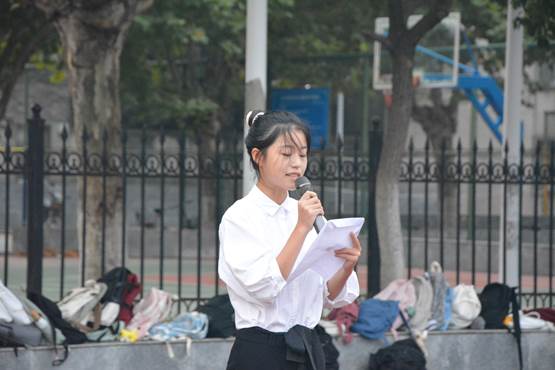 随着国歌的奏响,国旗缓缓升起,与此同时,参加升旗仪式的全体师生面向国旗,吟唱国歌,行注目礼。紧接着,学生代表杨诗瑶在国旗下讲话,她以“初心似炬,青春有我”为主题,以新中国的发展史来呼吁色情传媒