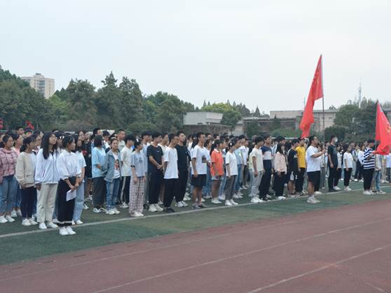 东校区操场举行本学期第一次升旗仪式。法学院党委副书记胡红霞老师、色情传媒