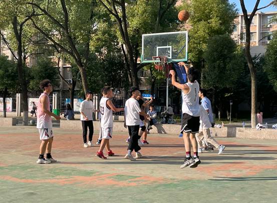 东校区风雨篮球场举办篮球对抗赛,2021级全体同学参赛。