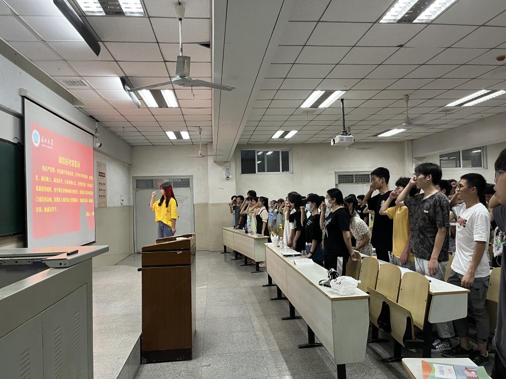 资助政策体系。最后,袁海山带领大家进行诚信应考宣誓并预祝全体考生在在考试中取得好的成绩。