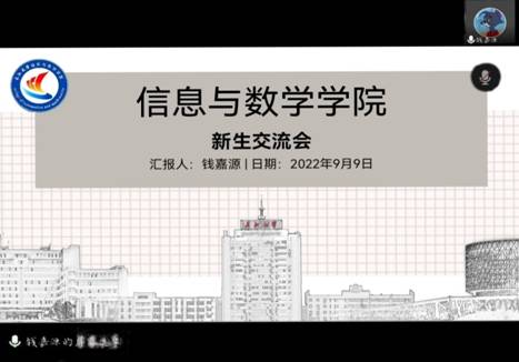 新生于9月9日上午8时通过腾讯会议召开新生学习经验分享会,本次会议邀请了2021级同学王太昊和钱嘉源作为分享嘉宾,22级全体新生与会。
