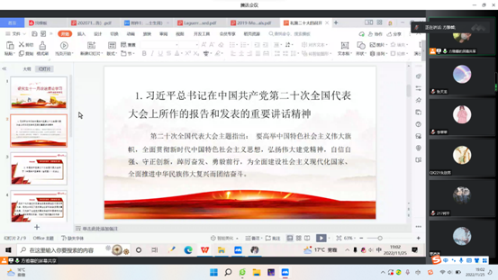 11月25日以线上方式开展了以“感悟思想伟力,汲取奋进力量”为主题的深入学习贯彻党的二十大精神政治学习。方雅馨主持,全体研究生参加。