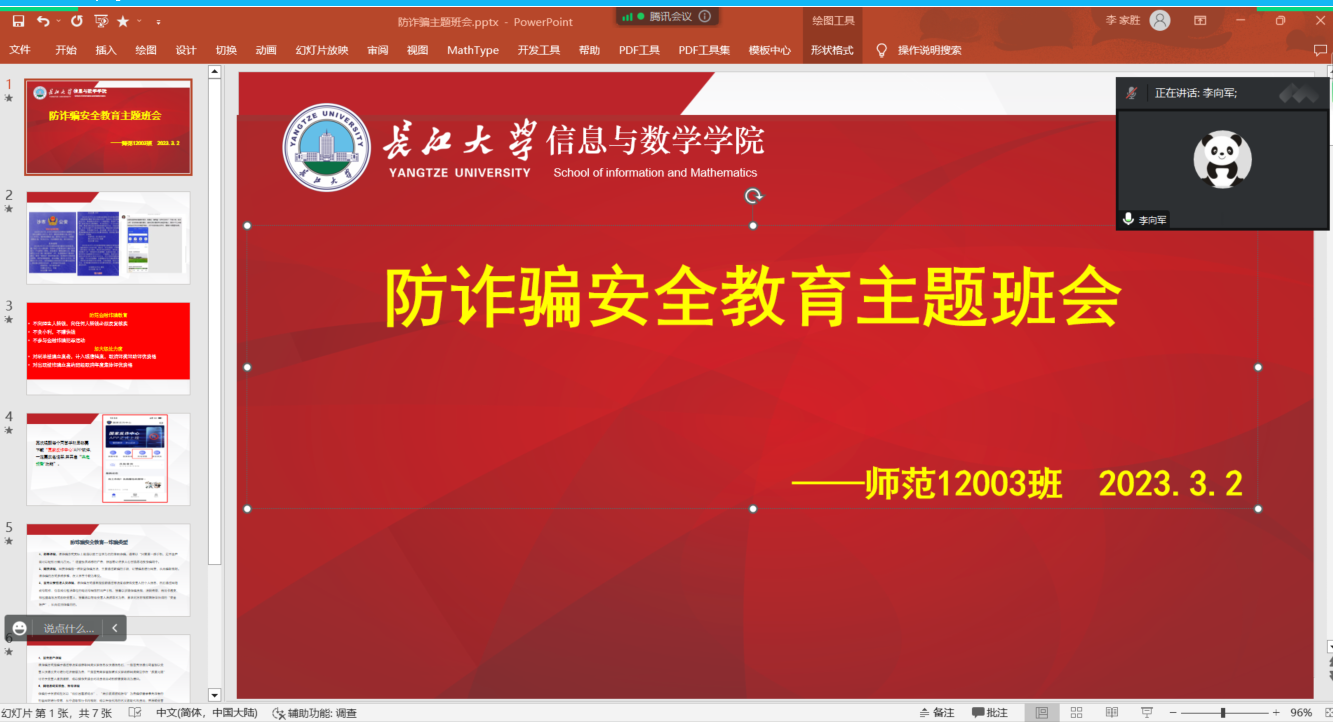 防电信诈骗、防不良网贷告知与承诺书”及“春季开学,传染病怎么预防?”两个文件内容。适逢春季开学季,病毒传播迅速,大家一起了解并学习了预防传染病知识。开学以前,学生中电信诈骗呈现上升趋势,大家一起了解了目前的情况并深入的学习了电信诈骗的案例,并逐一检查了同学们是否下载“国家反诈”APP,是否开启了来电预警。