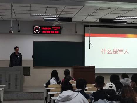 一人参军,全家光荣;青春无悔,矢志报国。18级退役大学生付淳宇结合自身入伍后多次执行重要任务的经历,生动描绘了一名普通大学生向合格军人转变的艰苦历程。“做难事必有所得,能吃下别人吃不下的苦,才能有别人没有的收获”。一句“什么是军人”的提问,带来的是对军旅生活的无限遐想和向往。通过与同学进行问答互动,组织讨论交流,充分提高了同学们对军人职业的了解和认可。