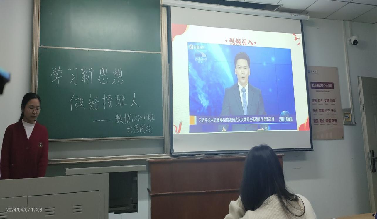 (通讯员 熊语诗)为深入学习宣传贯彻党的二十大精神及团十九大精神,根据团中央关于面向广大团员和青年开展学习贯彻习近平新时代中国特色社会主义思想主题教育的部署安排和《共青团中央关于面向广大团员和青年开展学习贯彻习近平新时代中国特色社会主义思想主题教育的通知》。数据12201班围绕“学习新思想,做好接班人”的主题,于2024年4月7日开展了线下团会活动,本次会议由团支书熊语诗主持,组宣委员组织开展,全班同学共同参与学习