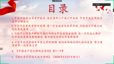 于2024年5月23日晚7时在线上开展了五月份政治理论学习。学院全体研究生参与学习,会议由程迅主持。