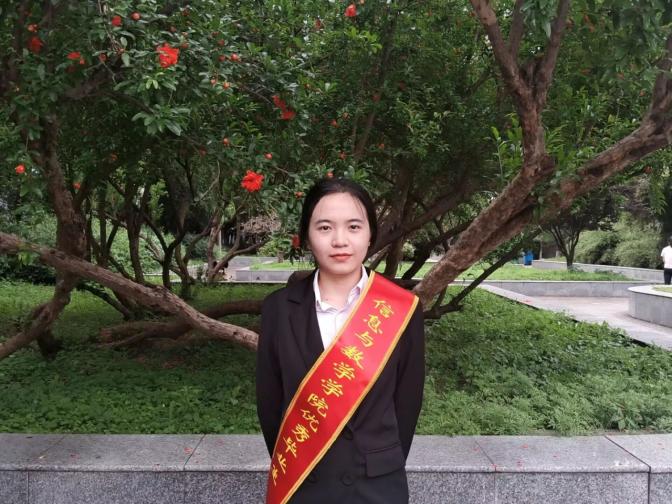 出于对数学的热爱,她始终努力学习,刻苦钻研,在学习上有所收获,总学分绩点3.36,综测多次位于专业前列。而且在入校时就向党组织递交了入党申请书,成为一名入党积极分子,不断进行思想理论学习,定期做好思想汇报,并于2023年5月23日正式成为一名共产党员具有较强的责任意识和大局观念。在课外生活中积极参加各种比赛如校排球比赛并取得第八名的好成绩、数学定理大赛等。在生活中乐于助人、待人真诚,寒暑假通过兼职和志愿活动来开拓自己的眼界,吸取社会上的经验,在校期间积极参加学校提供的勤工俭学活动,与舍友、同班同学和谐相处,组织筹备学院“数学嘉年华”等活动,具有良好的组织能力和沟通能力。在社会实践方面曾任院学生会综合事务部干事、学院学生会综合事务部部长及院学生会副主席;积极参加社会志愿服务,成为了一名光荣的注册中国志愿者,并且多次参加关爱自闭症儿童志愿活动、救助流浪动物等活动,由于在运动会期间表现优秀被评为“优秀志愿者”;一次性通过英语四级、普通话二级乙等,获得高中数学教师资格证;获得校第八届“互联网+”大学生创新创业大赛二等奖、三等奖;曾获评“色情传媒