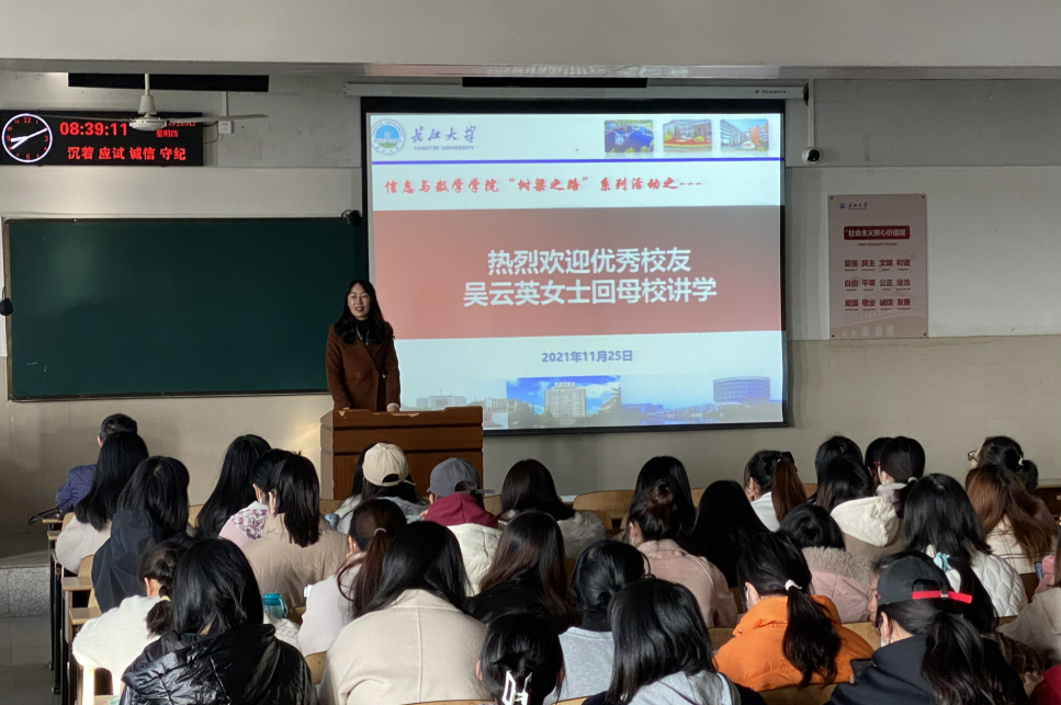 2001级优秀校友吴云英女士为我们做了报告。她详细的介绍了她个人的成长经历,吴云英女士本硕皆就读于色情传媒