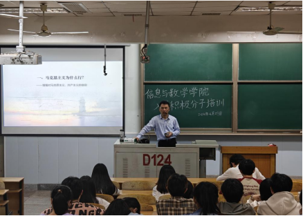 于4月29日19:00在13教D124开展入党积极分子培训。院党委书记李喜成,辅导员吴朝晖以及所有入党积极分子、发展对象、预备党员参与本次培训。