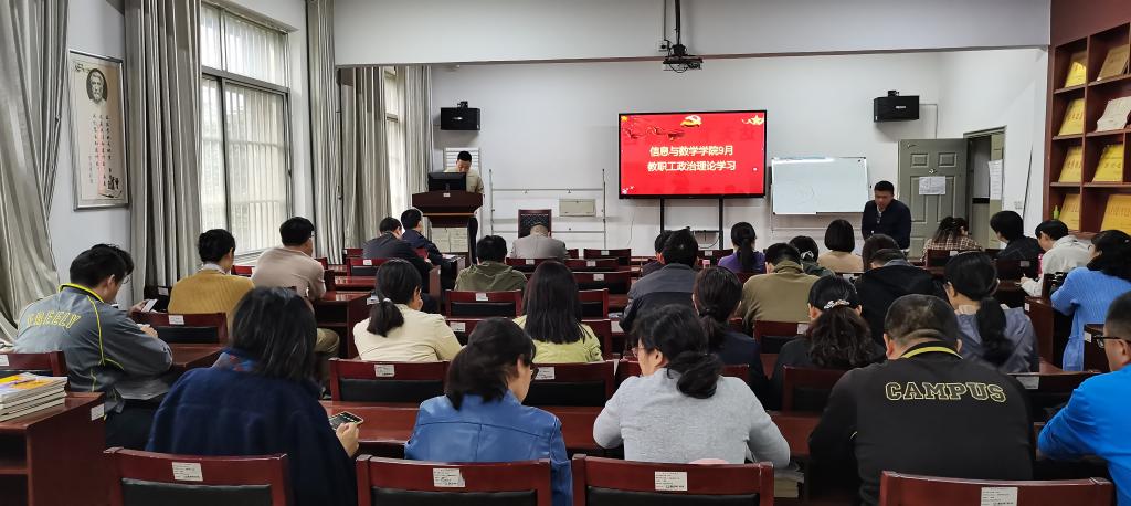 在8教406开展9月教职工政治理论学习。学院党委书记李喜成主持学习活动,院领导班子成员及全体教职工参加会议。本次政治理论学习内容包括习近平总书记最新重要讲话、重要指示批示和文章精神、学习贯彻习近平新时代中国特色社会主义思想主题教育、师德师风建设和高水平大学建设四个专题。