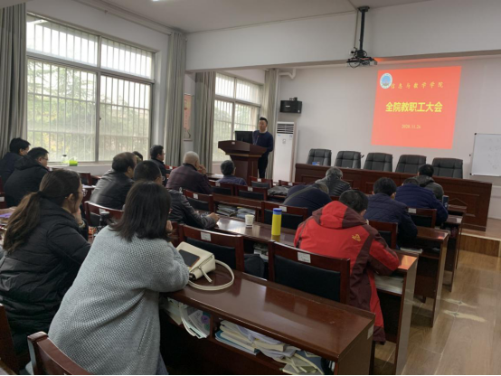 在8教406会议室开展2020年11月教职工政治学习。会议由学院院长张涛主持,荆州校区教师现场参会,武汉校区教师由潘大勇老师组织集体学习。