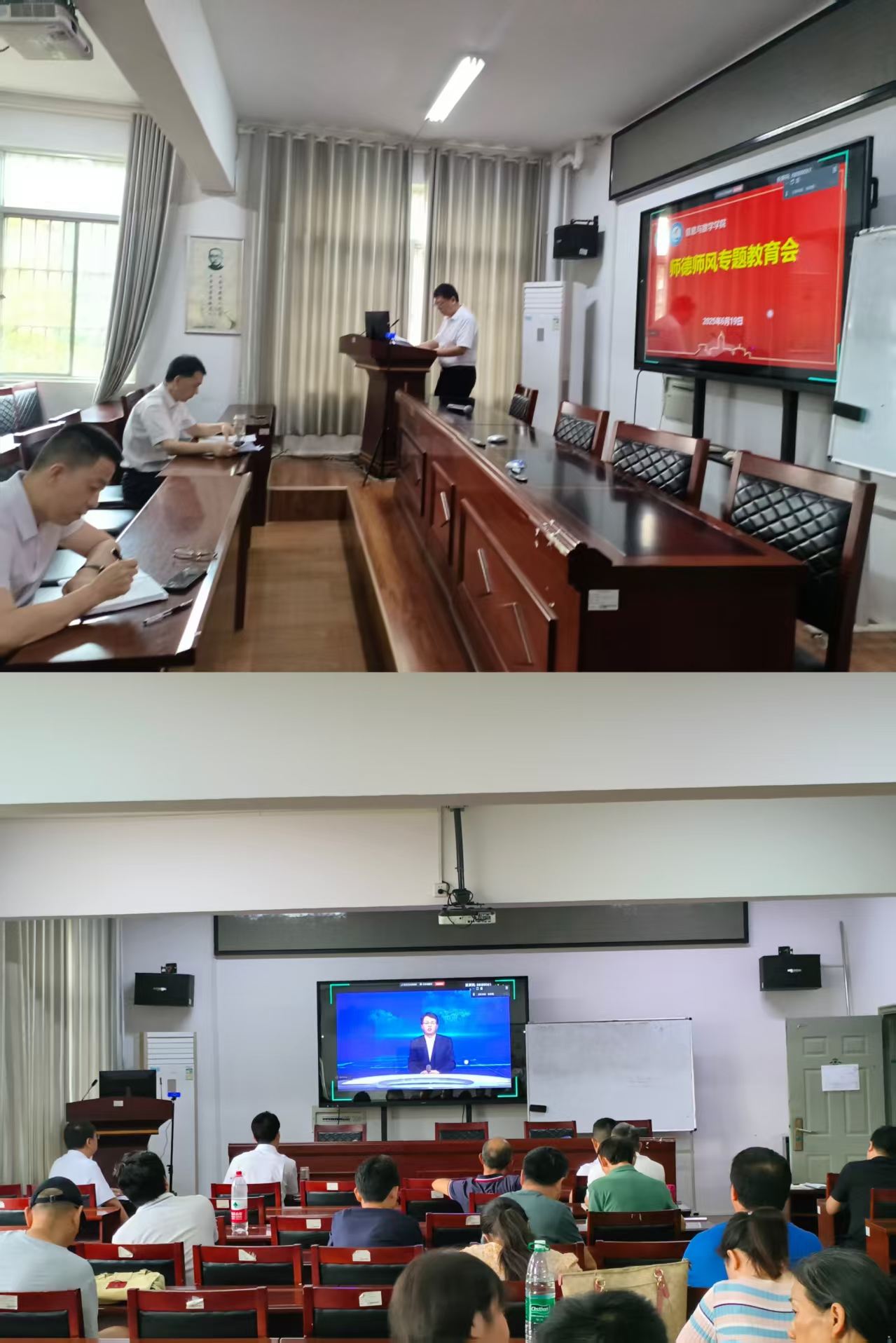 关于进一步加强师德师风建设的实施意见》。结合文件精神,现场组织观看高校违反师德师风典型案例警示教育片,通过真实案例剖析师德失范行为的危害后果,强化教师职业道德底线意识,推动形成“以德立身、以德立学、以德施教”的育人氛围。
