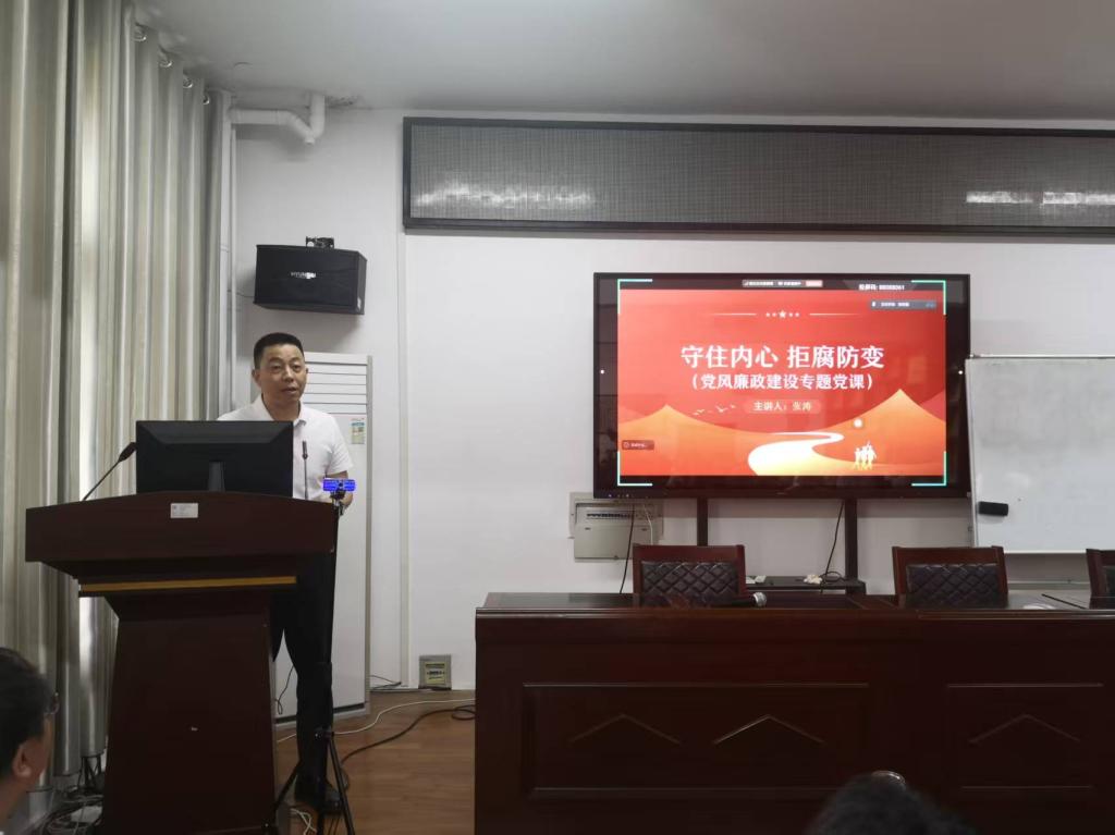 最后,张涛以“守住内心 拒腐防变”为主题讲授党风廉政建设专题党课,围绕党员干部思想防线建设,从理想信念、纪律规矩、行为规范等维度深入剖析,结合高校系统廉政风险点,强调以“严”的标准筑牢拒腐防变思想堤坝,要求全体教职工将廉洁自律要求融入教学科研全过程,以清风正气护航学院事业发展。