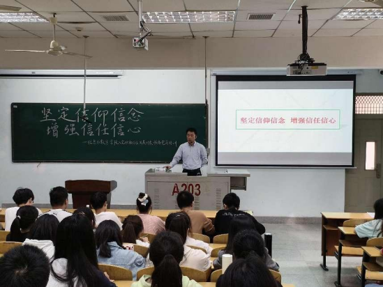 最后,李喜成书记向同学们发出真挚的呼吁:理想信念是共青团员的灵魂,要坚定理想信念,始终不渝地跟党走,为人民服务;理想信念是共产党员精神上的“钙”,理想信念动摇了,意识形态就不稳固,理想信念丢失了,就会丧失奋斗的意志和勇气。所以作为预备党员一定要坚定信仰信念,增强信任信心。