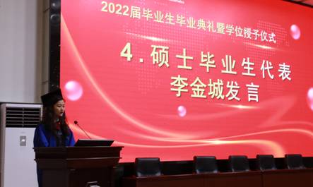 硕士毕业生代表李金城的《凤凰花开 不负青春且知行》带领大家重温了在校三年的生活,用三年的成长表达了对导师们、学院老师们的感激,更是深情的表达了对学院的不舍之情。