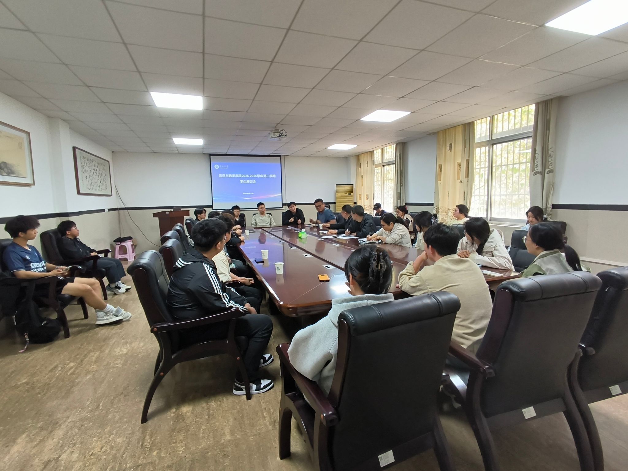 在8教210会议室召开本学期学生座谈会。会议由教学副院长李向军主持,党委副书记谷军、学工办、教学办负责人及各班学生代表参会。