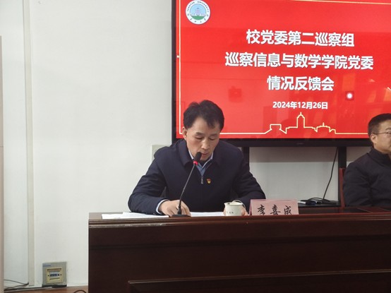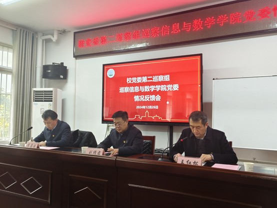 会上,第二巡察组组长王红松同志进行情况反馈,他实事求是、客观中肯地指出了巡察发现的主要问题,并从三个方面提出具有针对性的意见建议:一是要经常性的深入研究、谋划关于学校、学院高质量发展问题,充分发挥学院党委把方向、谋大局、促发展的积极作用;二是要进一步加强作风建设,坚决杜绝形式主义工作作风;三是要加强制度管理,在制度建设上高标准、严要求,实现各项工作规范化管理。